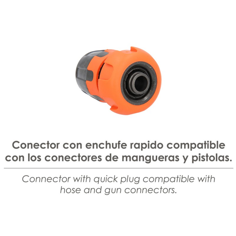 - Conector con enchufe rapido compatible con los conectores de mangueras y pistolas.