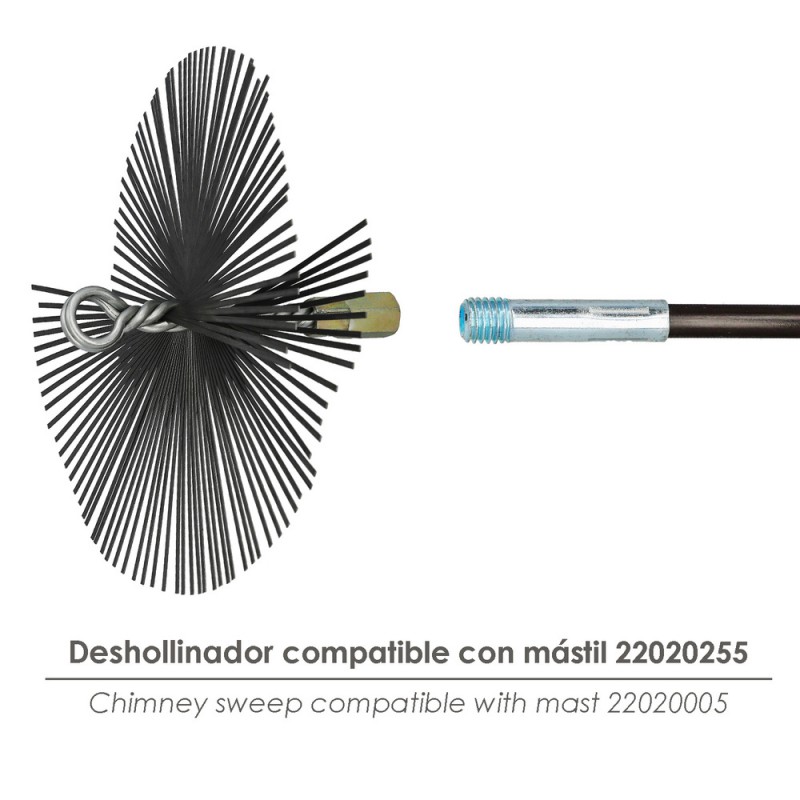 - Su uso es válido para diferentes referencias como el Kit cepillo deshollinador tubo estufa (22020655), el Cepillo limpiador chimenea (22020650) y el Mastil deshollinador de 5 tramos de 140 cm (22020635), lo que lo convierte en un complemento ideal para tu kit de mantenimiento.