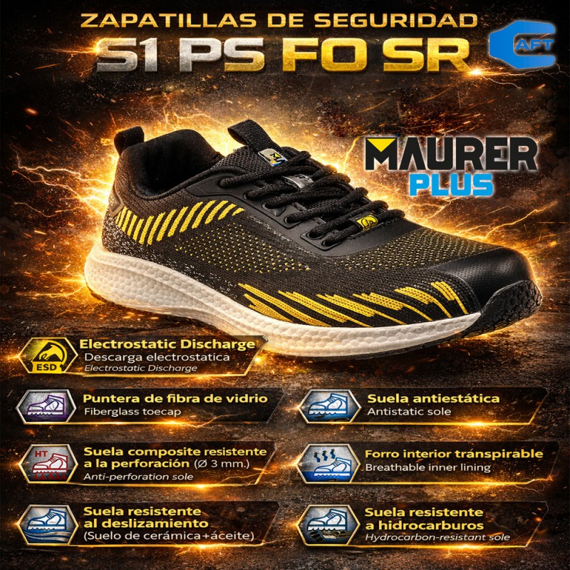 Deportiva Seguridad Maurer S1 Modelo Lusitania Antideslizante con Suela Composite y Resistencia a los Hidrocarburos Talla 44