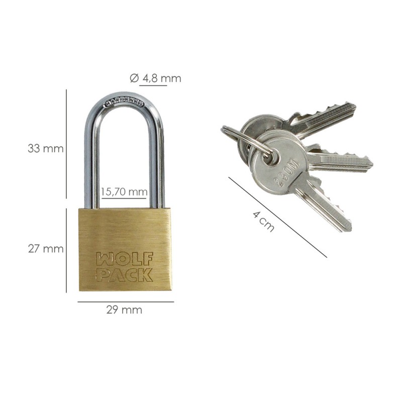 Candado Laton Arco Largo Llaves Iguales 30 mm. Nº2 Heavy Duty