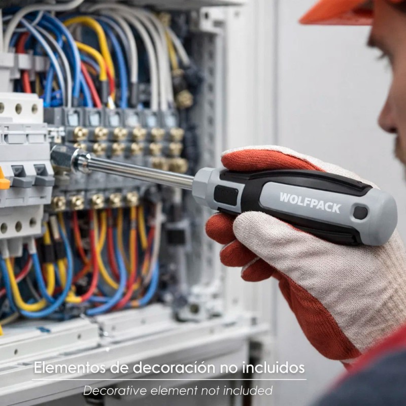 - El diseño ergonómico de este destornillador lo convierte en una opción sumamente cómoda de usar. Gracias a su mango con recubrimiento de TPR, base de plástico y agarre engomado, se adapta perfectamente a la forma de tu mano. De esta forma, podrás aplicar la máxima fuerza con total comodidad, haciéndolo ideal para trabajos de electricidad, mantenimiento, reparaciones, mecánica, entre otros.