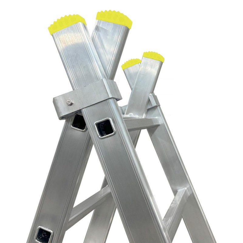 Escalera Aluminio 2 Tramos Mecanica 14 Peldaños. Plegable, Telescópica, Antideslizante, Resistente