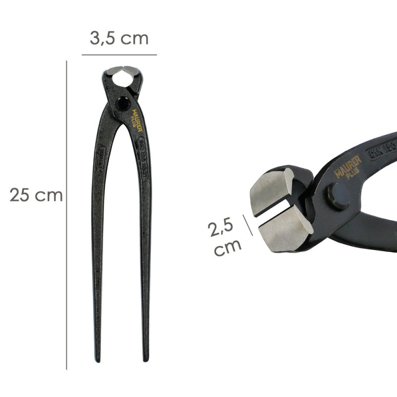 - El filo está pensado para agarre firme de materiales como alambre, barras pequeñas, pernos, clavos, etc. sirve para sujeción y doblado.